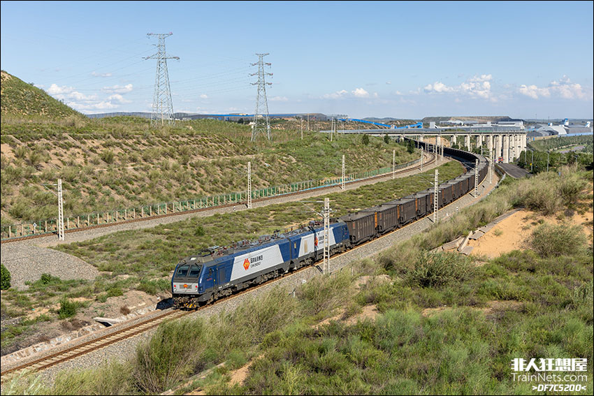 2025年7月20日。包神线。国能集团HXD2-7001牵引全列C80空车驶出巴图塔站。