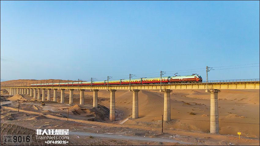 2024年10月,敦煌铁路甘肃段,“丝路梦享号”披着晨光驶过沙山沟路段,接近敦煌郊外。作为当前几乎唯一能行驶在敦煌铁路上的客车,丝路梦享号在沿线的观景体验独一无二, 也给敦煌铁路本身增添了一抹亮色。