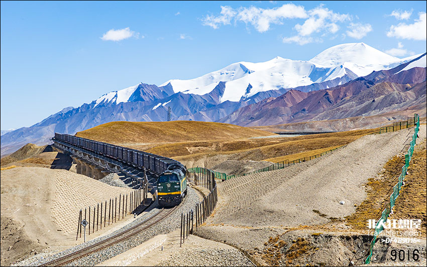 2024年10月,NJ2机车牵引货运列车在身后玉珠峰皑皑白雪的映衬下翻越昆仑山口,迈着轻快的步伐向山下驶去。
