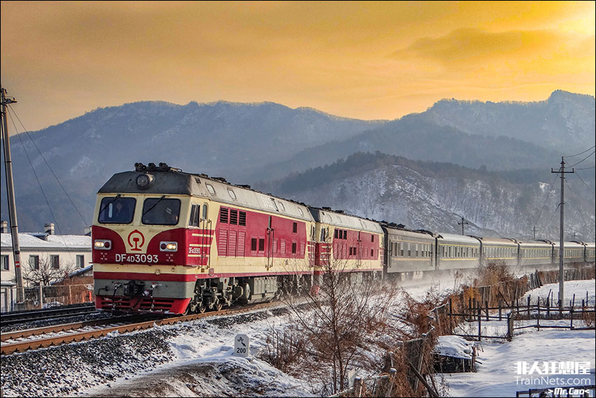 2025年2月14日。绥佳线。由三江平原开往嫩江平原的K7106次(佳木斯-嫩江)哈局佳段花老虎双机牵引通过绥佳铁路229km道口。