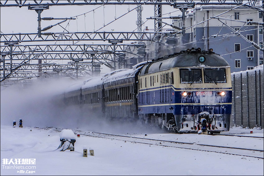 2024年深冬。绥佳线。乘风而来踏雪而去的列车K7126次(佳木斯-哈尔滨)达速通过西佳木斯车站。