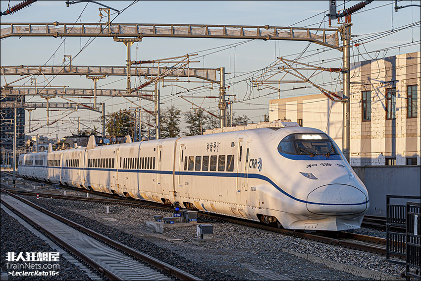2024年10月27日。北京环形铁道。傍晚的余晖照在洁白的车身 CRH2C-2068。