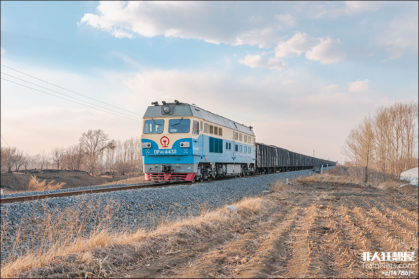 2025年3月。吉舒线。哈局哈段DF4C-4432牵引区段货物列车接近金珠站,去棋盘Ⅳ场方向。