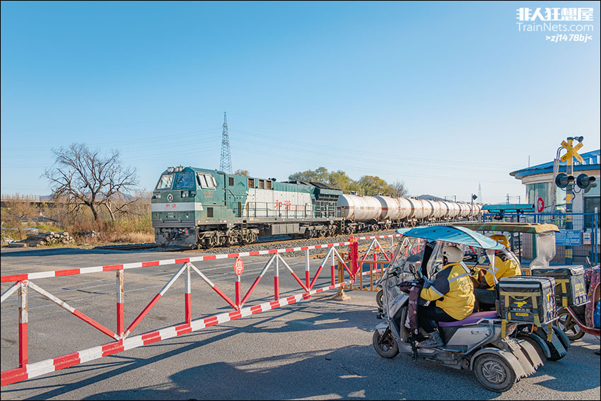 2024年10月。长图铁路。沈局HXN5牵引混编货列接近K130道口,终到龙潭山站。
