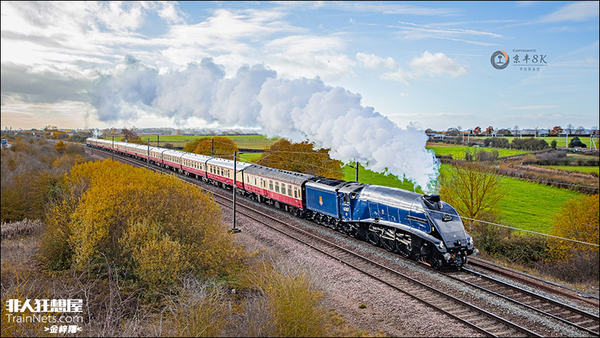 2024年11月。LNER Class A4 Pacific 60007 “Sir Nigel Gresley”牵引1Z66次旅游列车通过Colton Junction。