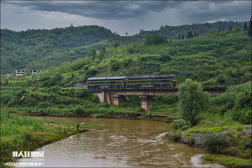 2025年7月10日,水大线,双机DF4B在二塘区站完成调车任务后开52611次前往野马寨站。