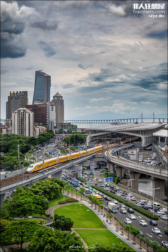 2025年8月,CRH2J-0205执行广珠+珠机城际检测任务驶入珠海站。