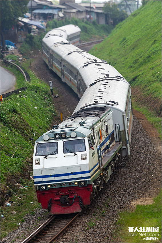 2025年8月25日。CC203型机车牵引雅加达至万隆的旅客列车驶过“S”型弯道。