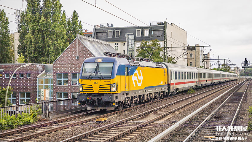2025年8月。Amsterdam Centraal-Berlin Ostbahnhof IC147次通过Berlin Savignyplatz附近。九月底开始这条线路列车将由目前的机辆式IC1客车陆续更换为ICE3 neo动车组运行。