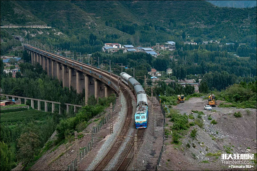 2025年8月。尾部加挂了隧道检测车的洛嘉通勤驶出太行山,当天该车还在隧道口正线停车进行了短暂的乘降作业,实属新奇。