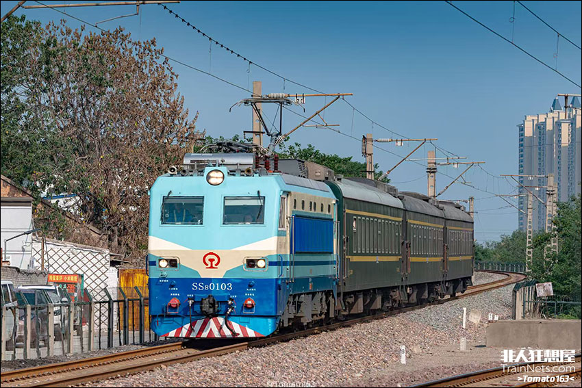 2025年8月。美丽亮眼的SS8-0103牵引洛嘉通勤车通过洛东疏解线,即将接近洛阳站。