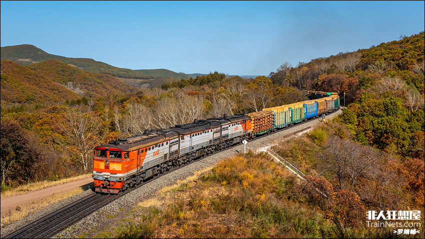 2019年9月30日,俄铁货运列车行驶在绥芬河套轨区间。