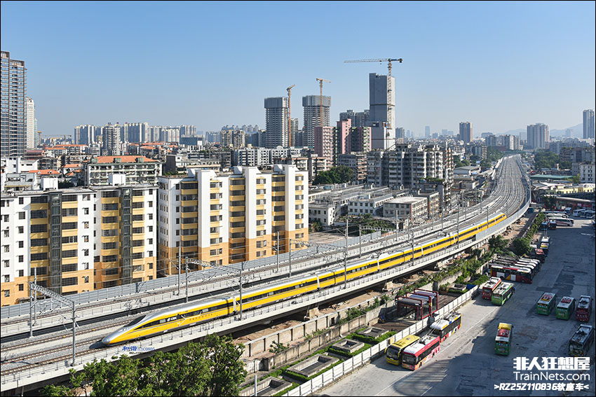 2025年10月4日,广湛高铁,CRH380AJ驶经广州城区,前往佛山站方向。