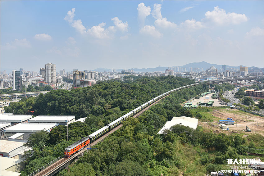 2025年10月1日,广茂线,由25Z担当的国庆临客K6638次(湛江西-广州白云)晚点30分钟达速通过肇庆城区。