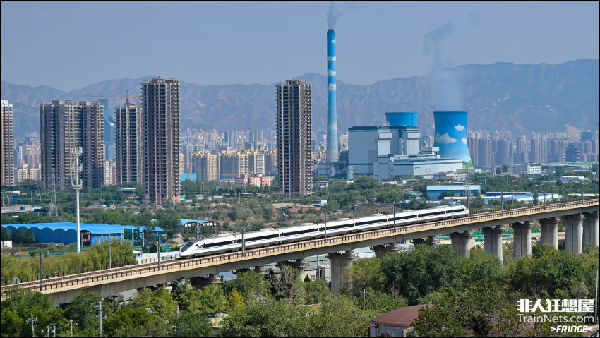 2023年10月初。兰新客专。CRH2G飞驰在兰新客专上,穿过兰州城。