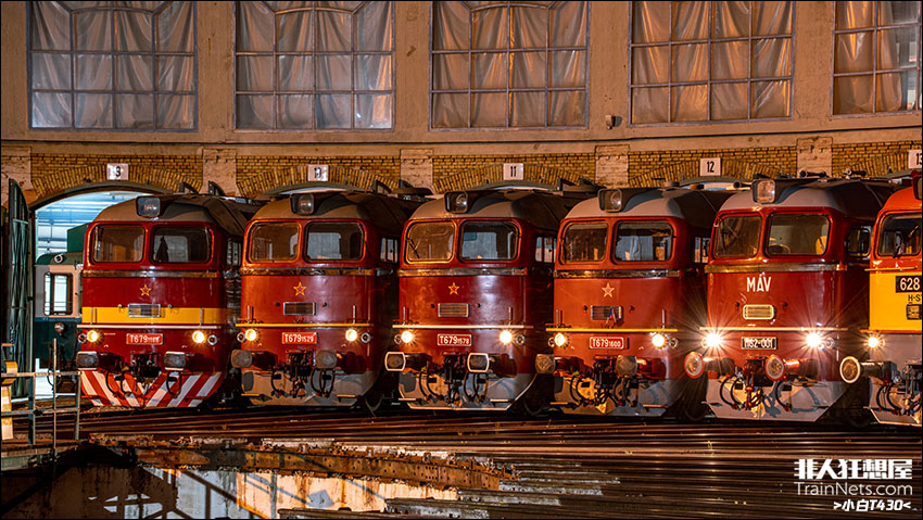 2025年9月27日,匈牙利布达佩斯铁路公园,五台超过50岁的M62机车停在一起。1965年第一台量产版M62(M62-001)交付给匈牙利铁路MÁV,命名规则根据匈牙利从瑞典购买的M61而来,一代传奇机车M62从此几乎开始出现在所有当时的社会主义国家。1966年,当时的捷克斯洛伐克同样购买了来自苏联卢甘斯克的M62机车,命名为T679。2025年,MÁV将M62-001彻底重新修复,完全恢复了其60年前的面貌。