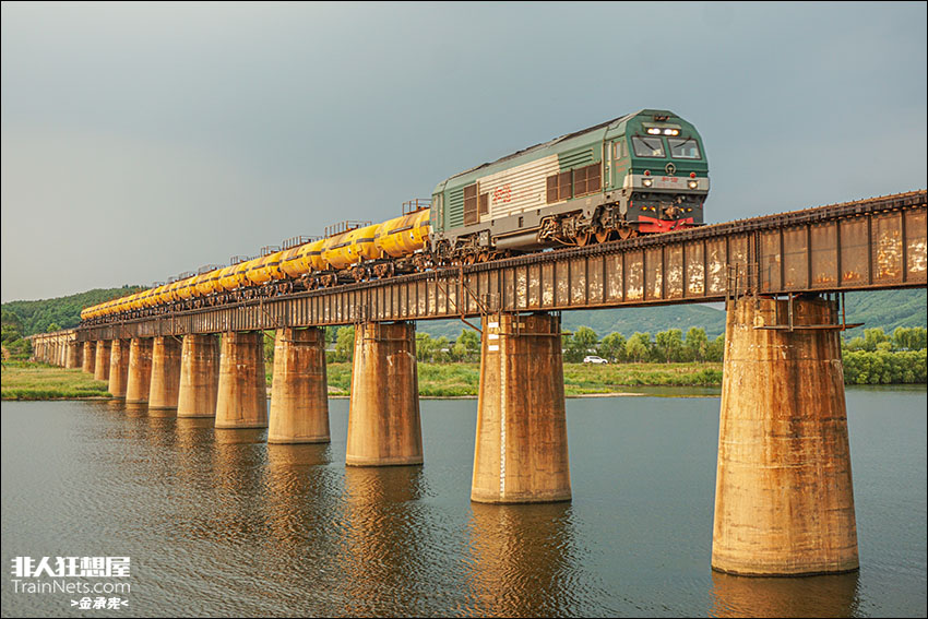2025年6月25日。凤上线。本线在地特色硫酸罐车(宽甸县特有)组成的37724次通过凤上线12号草河铁桥。