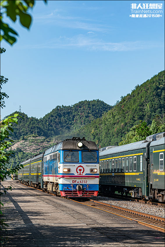 2025年10月3日,金温铁路石帆站,DF4D-4232牵引K944次通过,一旁K347次(沈阳北-温州)会让。