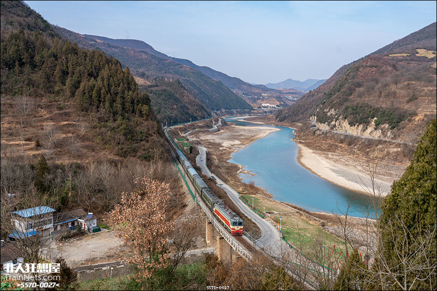 2024年1月,陕西汉中,8363次(略阳-汉中)通过宝成线K200公里处,接近横现河车站。