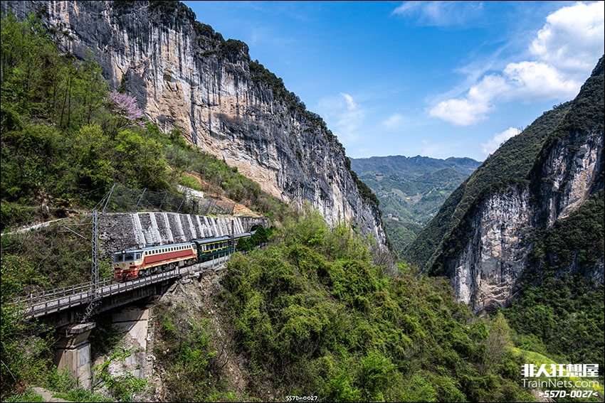 2024年4月,陕西安康,SS7C牵引6065次(安康-达州)通过白岩下的襄渝线。