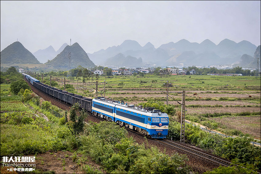 2023年4月。黔桂线柳城–肯洛段。SS3B-5056牵引货列从柳城站发车,在复线工程及配套设施的稳步推进下这些场景将难以复现。
