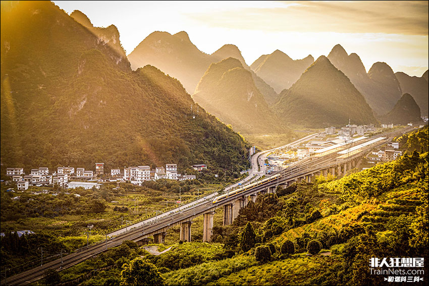 日落时分CR400AF-J通过阳朔站