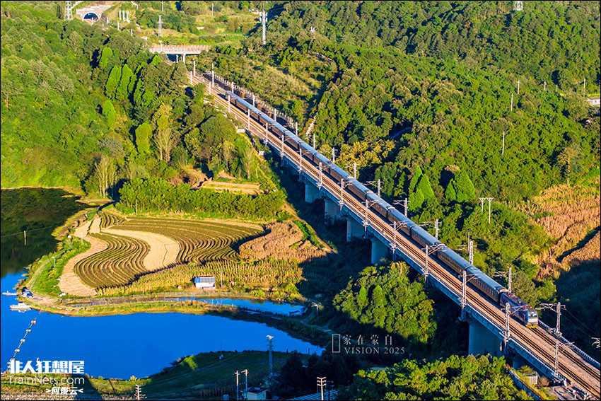2025年10月5日。日暮时分,国庆加班普速临客列车K4982次(昆明-成都西)行驶在新成昆铁路云南段(广昆复线)上。