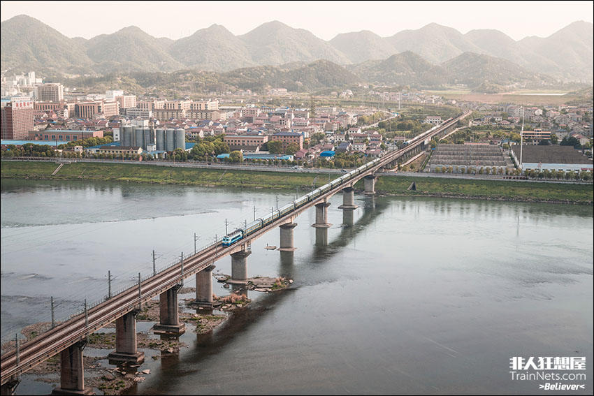 2025年4月,石长铁路,SS8牵引Z8316次(长沙-石门县北)跨过澧水,接近石门县北站。