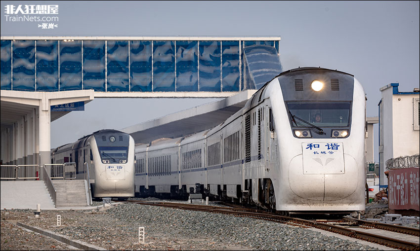 2017年8月,停靠在北京市郊铁路S2线黄土店临时客站的两列NDJ3型内燃动车组。