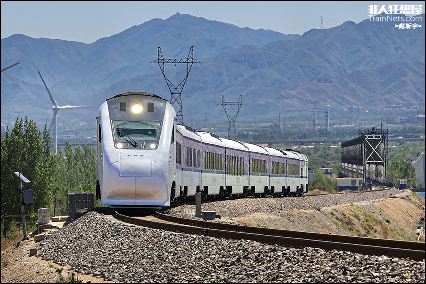 2025年5月3日。京包线。NDJ3型内燃动车组担当S287次(黄土店-沙城)接近狼山站,身后不远处便是上跨官厅水库的妫水河大桥。
