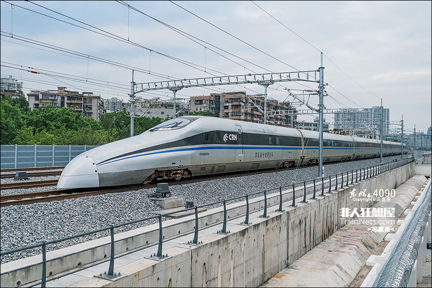 2025年11月,广东广州,荔南联络线,CRH380AM-0204接近荔湾线路所。