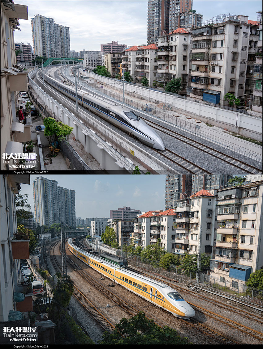 (下)2022年9月24日,“黄医生”通过广州西站,驶入广茂联络线。