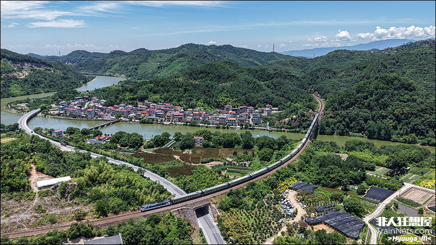2025年7月5日,金温温段DF4B牵引K943次(贵阳-温州)通过焦岩村附近,前方接近履坦站。