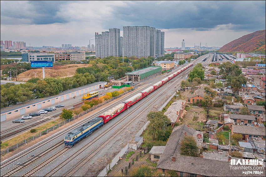 2025年10月。长图线。哈局三段DF11执行Y412次(虎林-敦化)通过龙潭山站,待进入吉林站换挂、调向驶向敦化方向。这也是“潇湘号”列车首次到访吉林市。