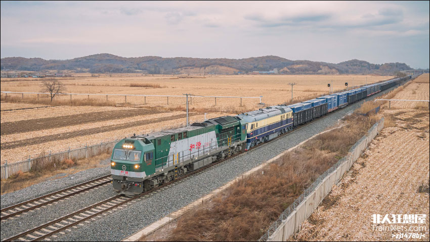 2025年11月。吉林九江联络线。沈局梅段HXN5-2017附挂沈局吉段DF11-0285执行直通货物列车接近新九站站,去南三道站方向。