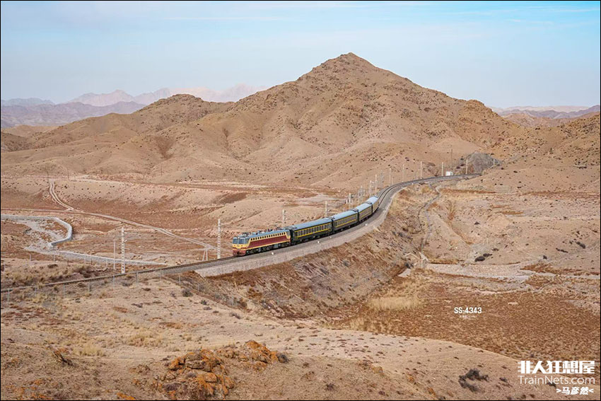 2025年12月1日,平汝铁路。客车7525次(银川-汝箕沟)通过柴达朗沟,即将驶入贺兰山隧道。