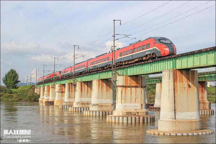 2025年10月19日。韩国世宗。湖南线方向驶来的ITX“心”列车通过位于忠清北道与世宗市分界美湖江上的京釜线铁桥,该桥已有120年的历史。
