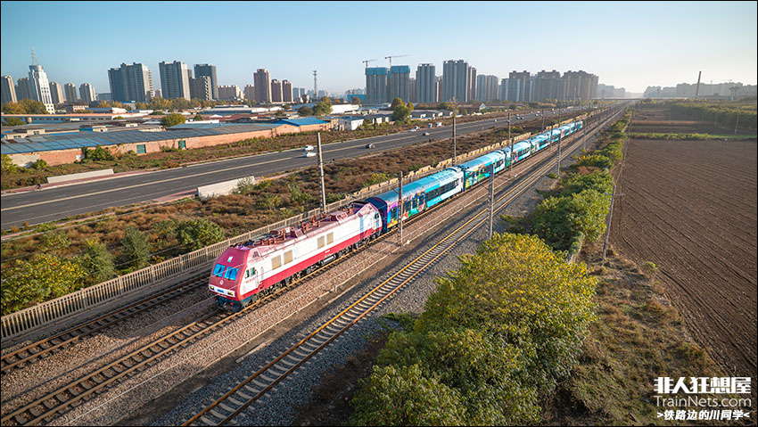 2025年11月9日,末班京广线上的“星光燕赵号”旅游列车Y966次由SS9-0141牵引,驶出邢台城区。