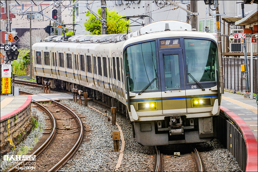 2025年4月,JR奈良线,221系列车驶入稻荷站。