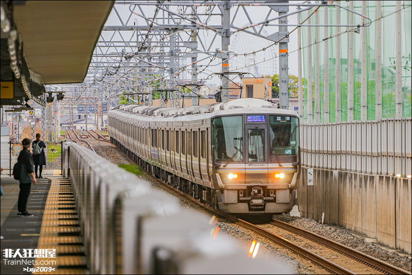 2025年4月,JR総持寺站,新快速列车从外侧线路通过。