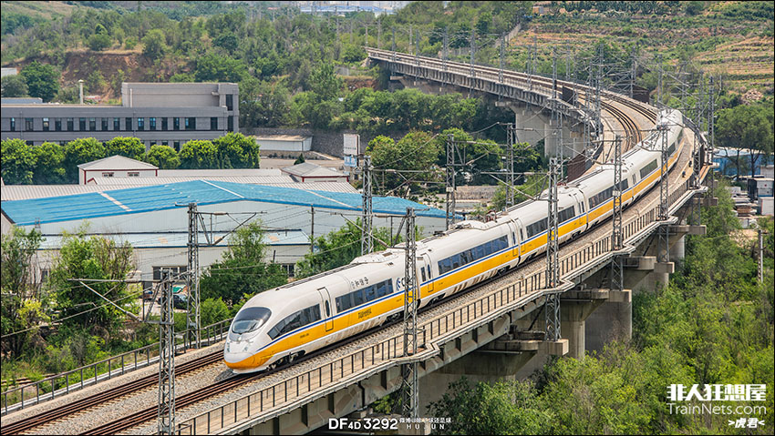 2025年6月。辽宁大连。丹大快速铁路。CRH380BJ-A-0504高速综合检测列车对丹大快速铁路进行检测。