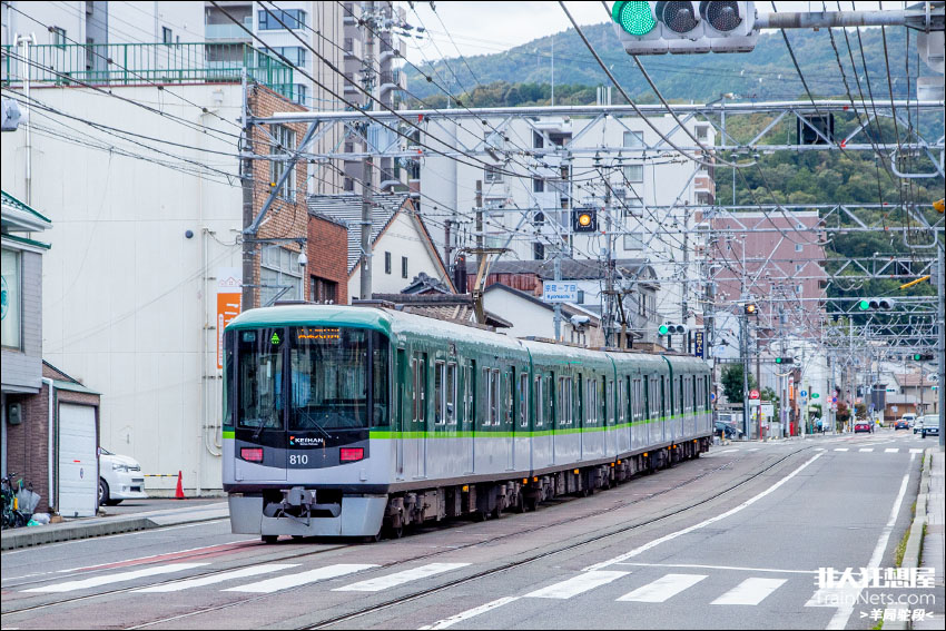 2023年10月,京阪电车京津线列车从びわ湖浜大津站发车,进入公铁并行区间,形成了“火车开在马路上”的奇观。