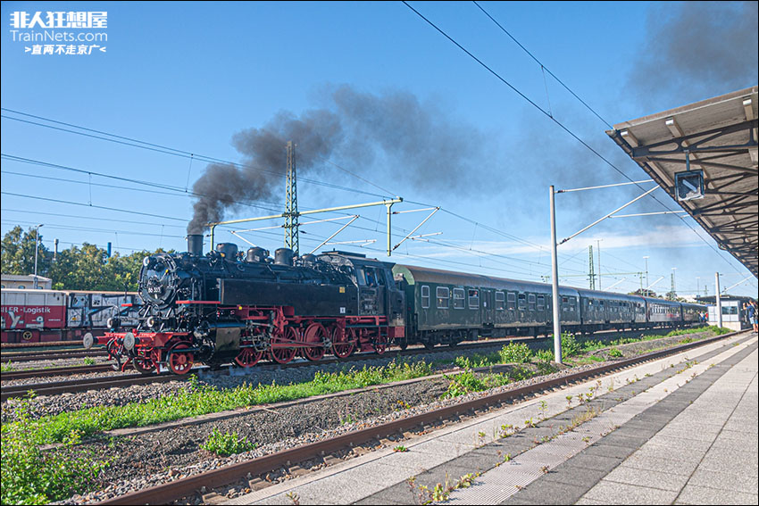 2025年9月20日,Freiberg(Sachs),由BR 86型蒸汽机车牵引的旅游列车缓缓开出Freiberg车站前往德累斯顿方向,每年的9月20日是德国铁道日,各个博物馆也将馆内蒸汽机车拿出来举行活动。
