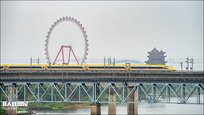 2025年9月。长株潭城际铁路。CR400AF-J-0002开行DJ1792次通过长株潭城际铁路跨湘江大桥。