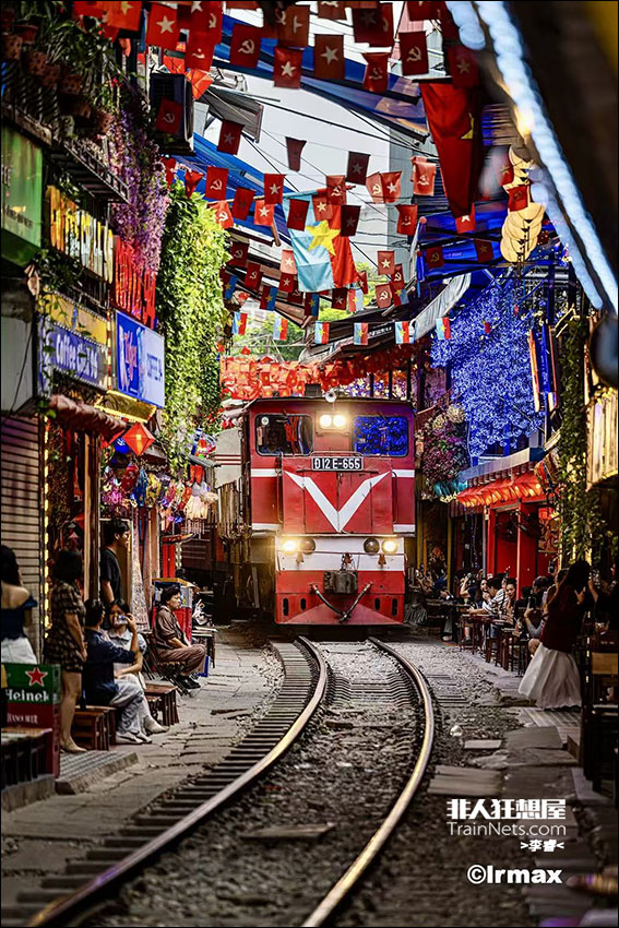 2025年9月。越南著名网红街火车街,位于河内站以北两公里的一个弯道处,是前往越南北部老街、同登、海防等线的必经之路。