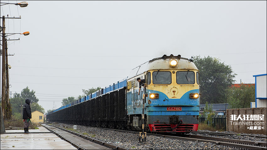 2025年10月,河北沧州。沧港铁路东风4-7493牵引重车通过黄骅车站,副司机受授路签。7493机车已在2025年11月封存,并在12月拆解。