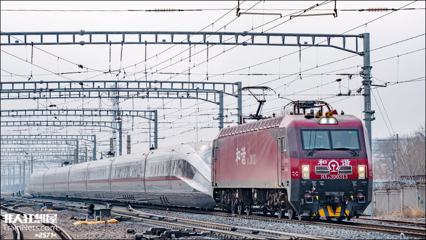 2025年冬,CR450BF结束60万公里考核从湖北宜昌返回,由HXD3D牵引回送回到北京。