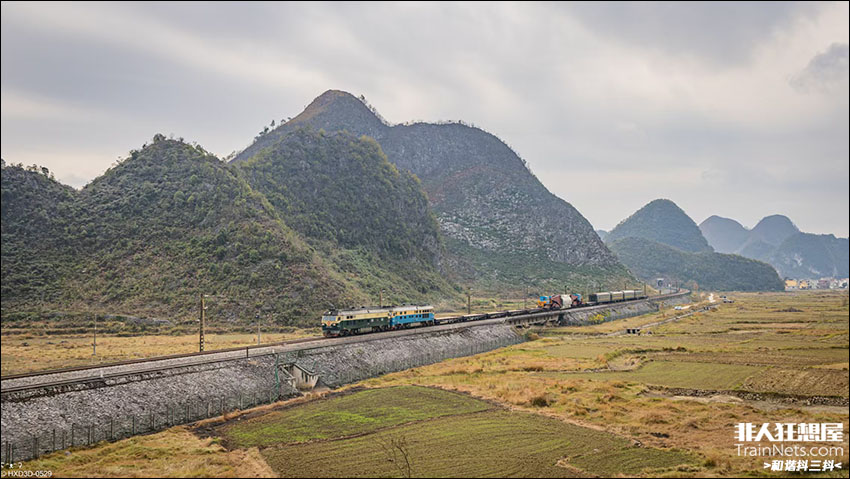 2025年12月,黔桂线,超限列车70003次接近黔桂线k260施工点,准备过局界到达麻尾站。