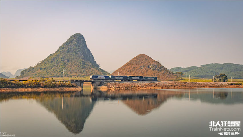 2025年12月,焦柳线,机车专列驶出寨隆车站,三台西局新段HXN5转配至南宁局,准备担任南宁南车站站调。