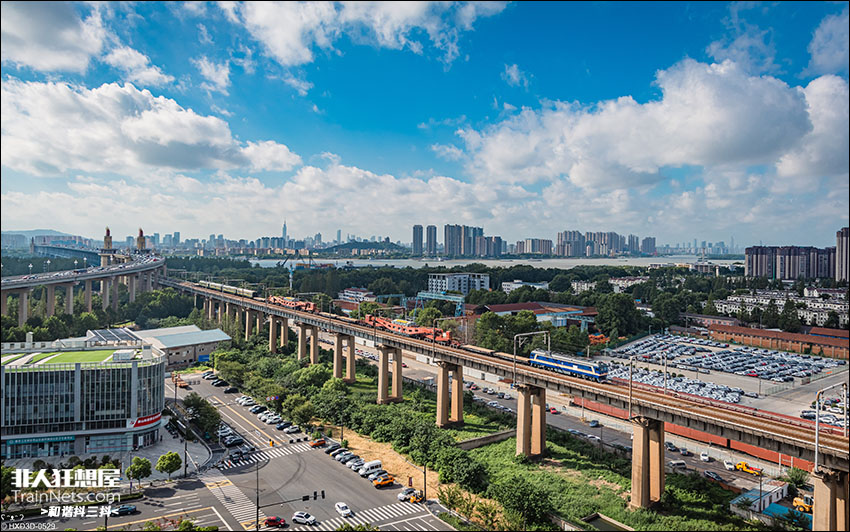 2025年7月21日。京沪线。超限列车70008次驶过南京长江大桥,运输两组变压器前往贵州省。